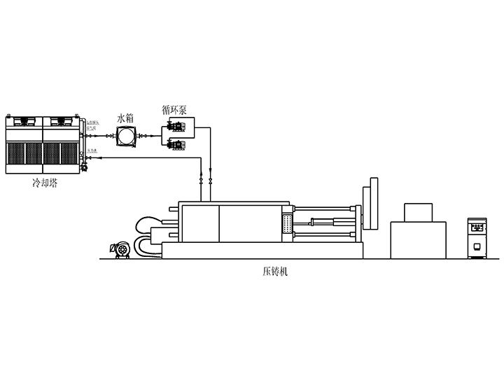 壓鑄機(jī)液壓油、模溫機(jī)和模具用閉式冷卻塔進(jìn)行冷卻。