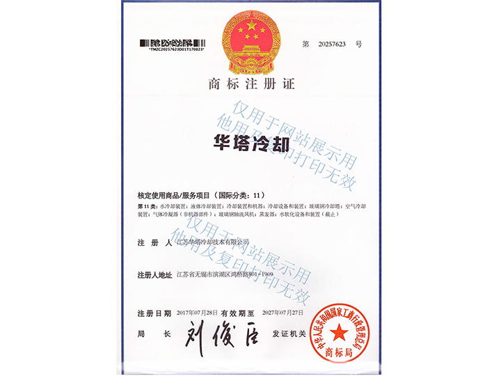 江蘇華塔冷卻商標(biāo)注冊(cè)證