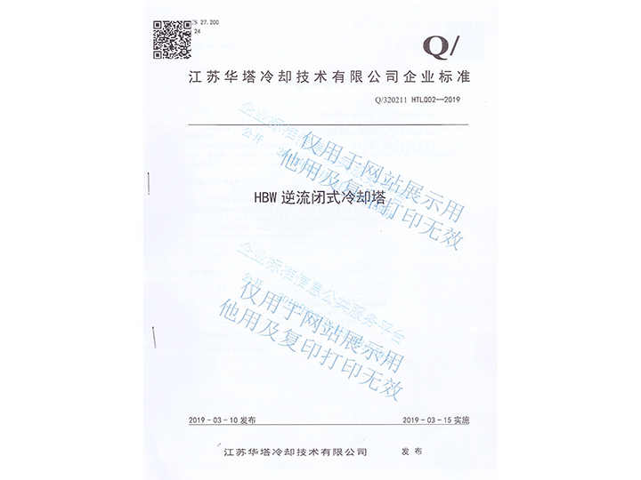 HBW逆流閉式冷卻塔企業(yè)標(biāo)準(zhǔn)