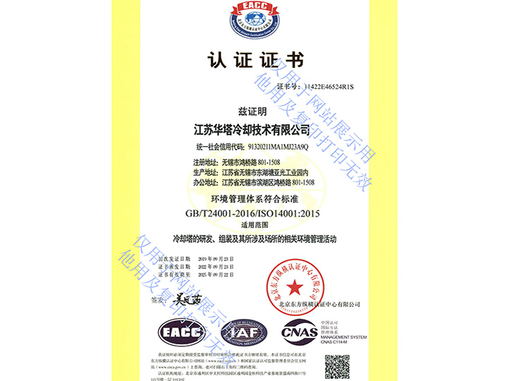 環(huán)境管理體系認(rèn)證證書