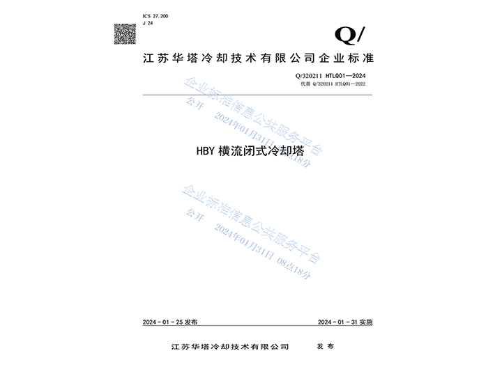 HBY橫流閉式冷卻塔企業(yè)標(biāo)準(zhǔn)