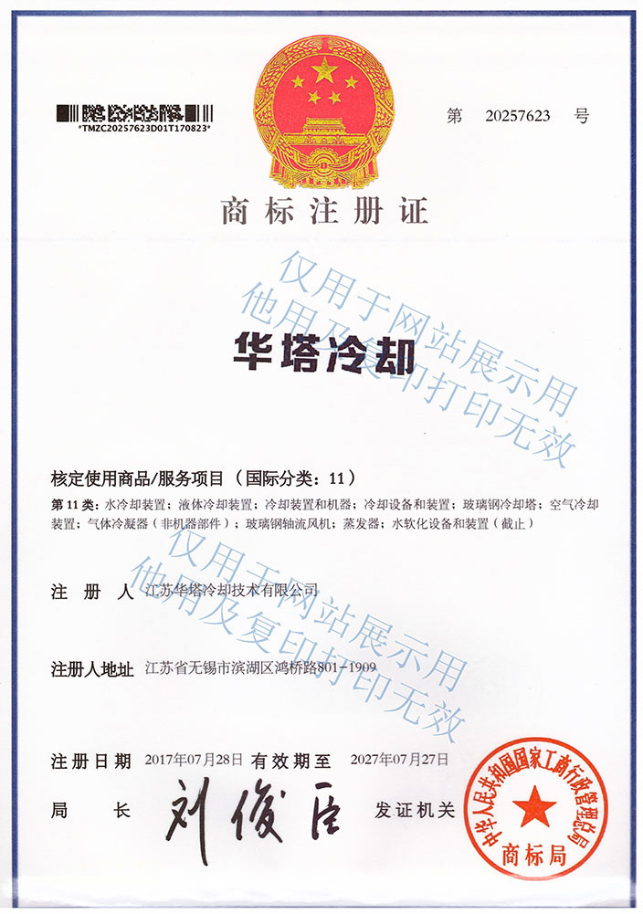 江蘇華塔冷卻商標(biāo)注冊證