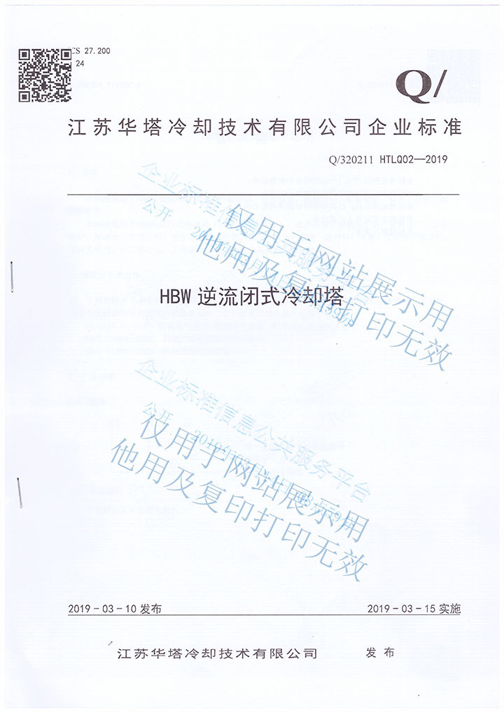 HBW逆流閉式冷卻塔企業(yè)標(biāo)準(zhǔn)